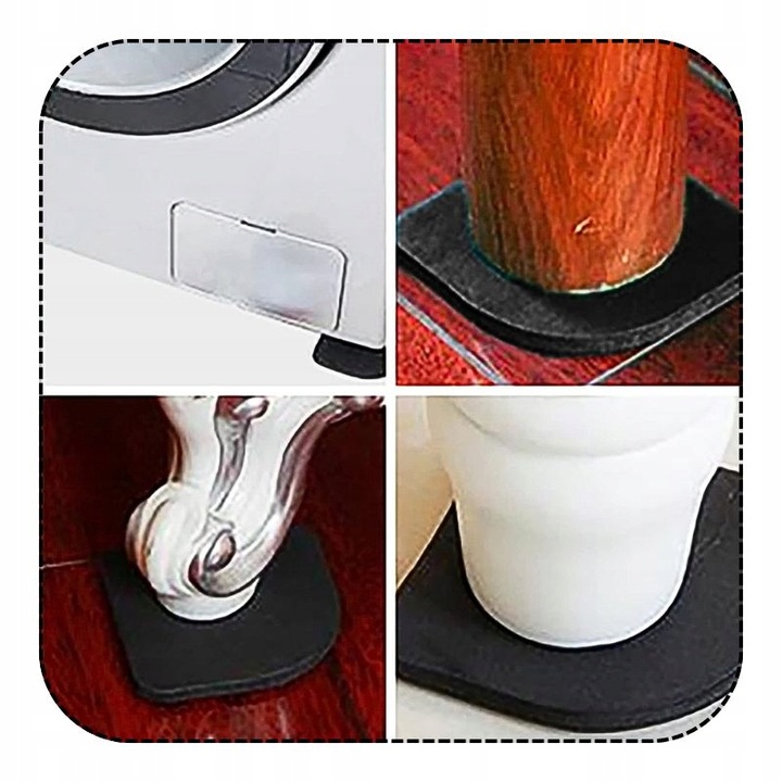 Idealne nie tylko pod pralki – sprawdzą się także pod lodówki, suszarki, zmywarki, a nawet meble: stoły, biurka, komody, krzesła. Chronią podłogę przed zarysowaniami i zmniejszają ryzyko przesuwania się mebli.