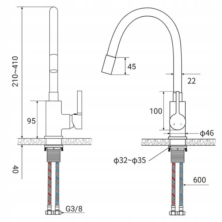 Obrotowa wylewka o kącie 360° pozwala na swobodne i precyzyjne mycie naczyń oraz napełnianie garnków. Regulowany zasięg wylewki (23–32 cm) to dodatkowy atut, który zapewnia komfort w codziennym użytkowaniu.