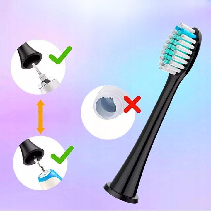 - Tylko do użytku dorosłych: Końcówki są przeznaczone wyłącznie do używania przez dorosłych. Należy upewnić się, że są one używane tylko w dorosłych szczoteczkach elektrycznych. Stosowanie ich przez dzieci może prowadzić do uszkodzenia zębów lub nadmiernego nacisku.