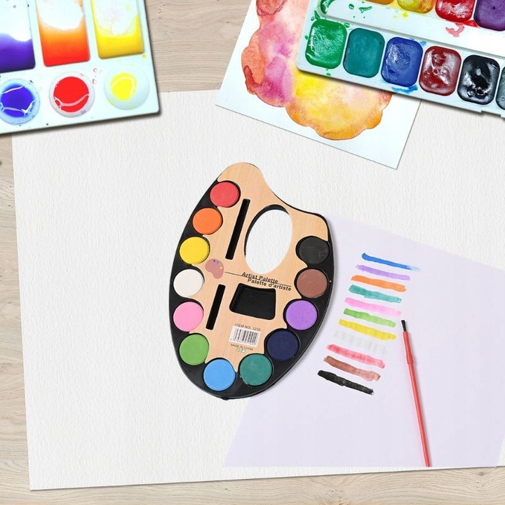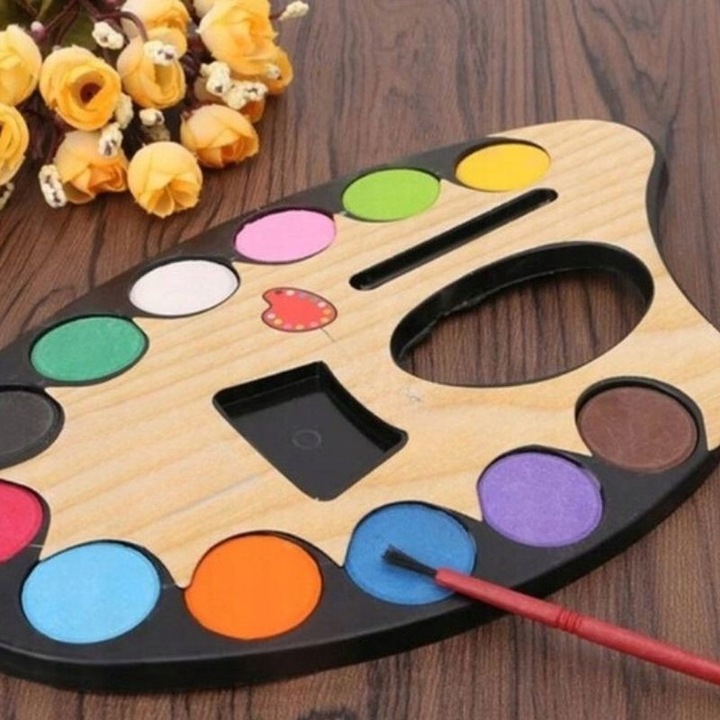PALETA FARB FARBY AKWARELOWE 12 KOLORÓW + PĘDZEL + PALETKA DO MALOWANIA