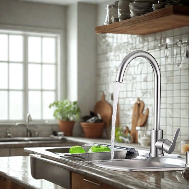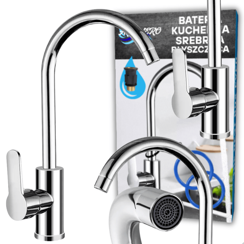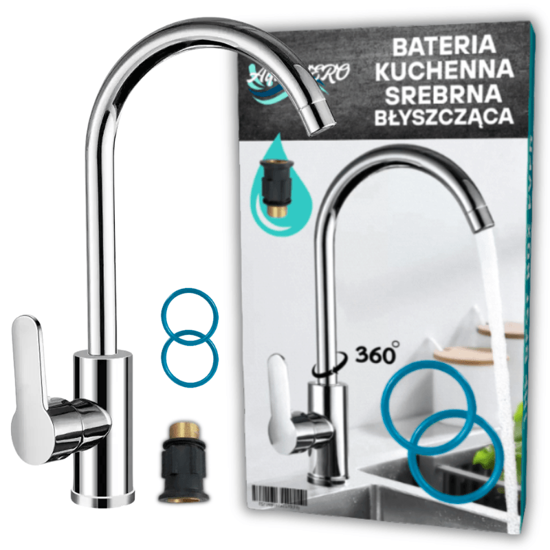 BATERIA KUCHENNA SREBRNA BŁYSZCZĄCA WYLEWKA KRAN DO KUCHNI 360 STOPNI – AquaVero