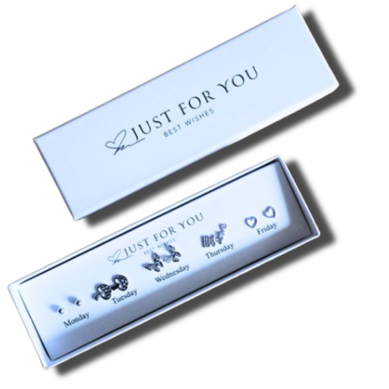 Elegantny zestaw 5 par kolczyków na każdy dzień tygodnia w pudełku