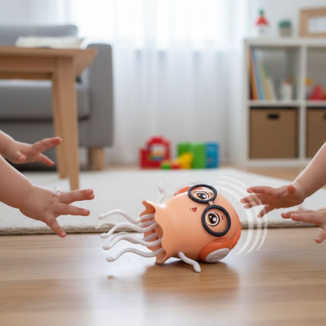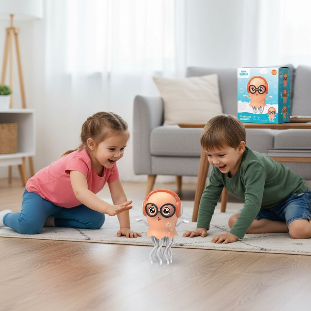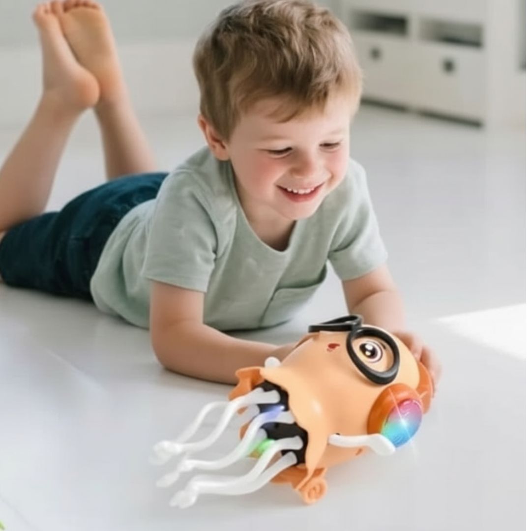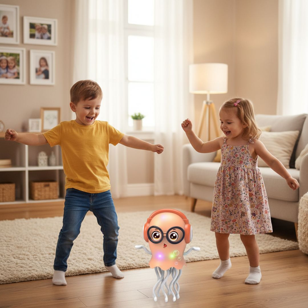 Interaktywna tańcząca ośmiornica to wyjątkowa zabawka, która skutecznie zachęca dziecko do ruchu i aktywnej zabawy. Łączy w sobie efekty świetlne LED, muzykę oraz funkcje ruchome, tworząc kolorowe i angażujące widowisko. Ośmiornica porusza się w różnych kierunkach, obraca się i „tańczy”, przyciągając uwagę malucha oraz motywując go do podążania za nią.