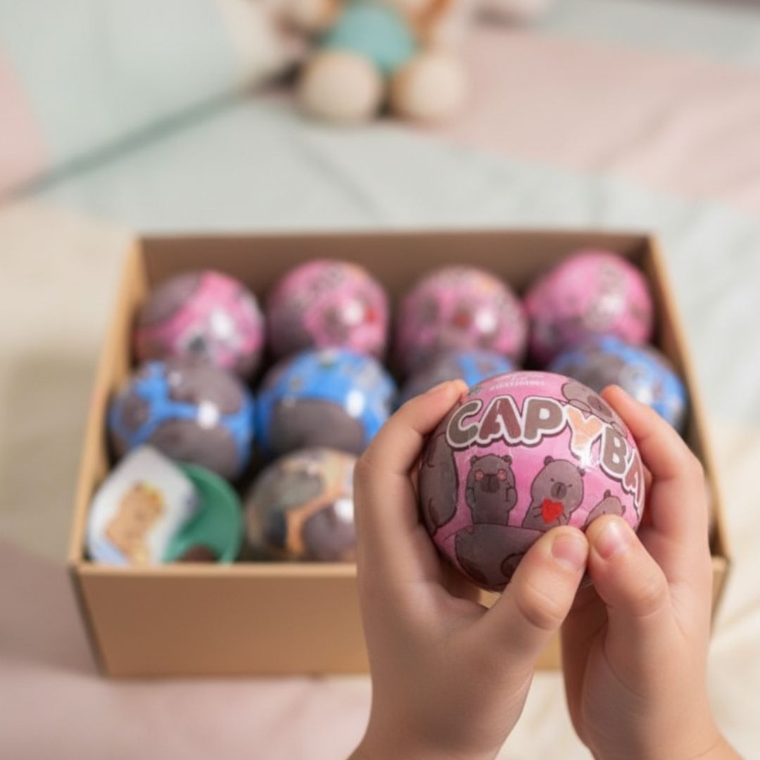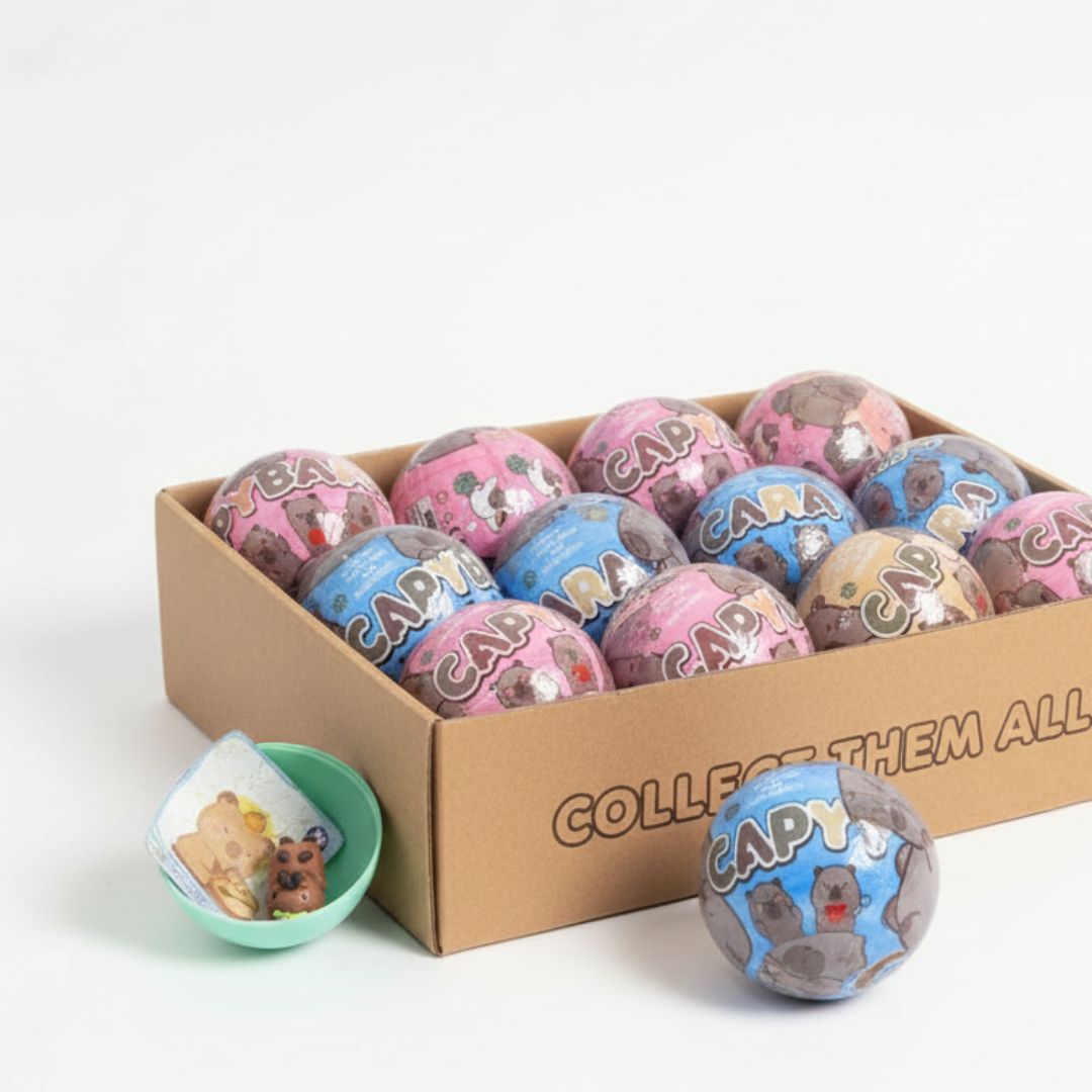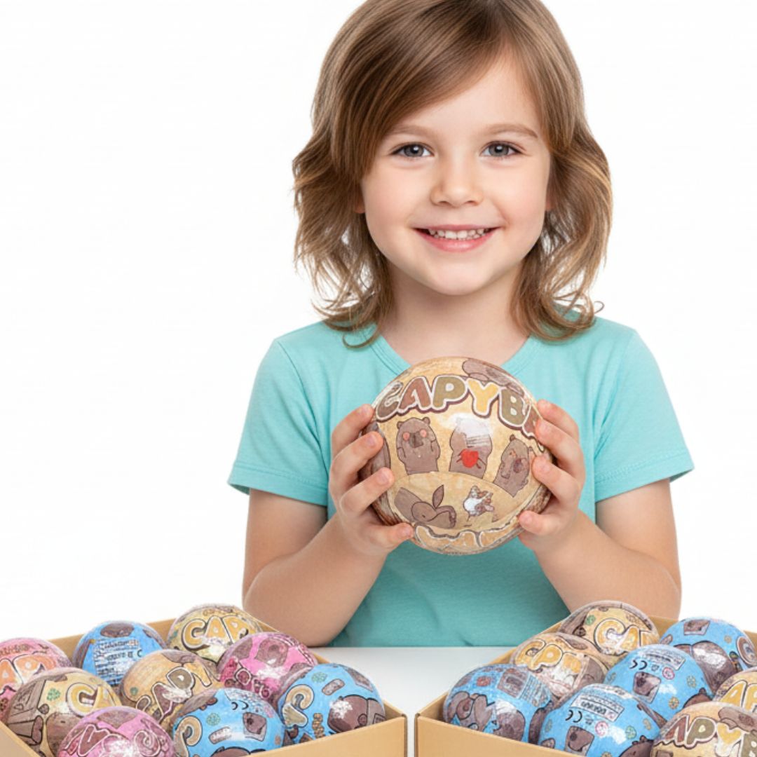 Każde jajko zawiera jedną figurkę kapibary w różnych pozach i stylizacjach. Otwieranie jajka dostarcza emocji i niespodzianki – nigdy nie wiadomo, która figurka się w nim kryje.