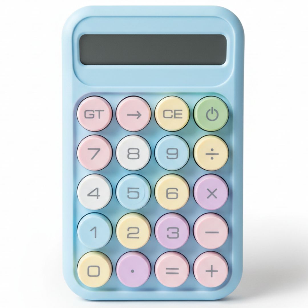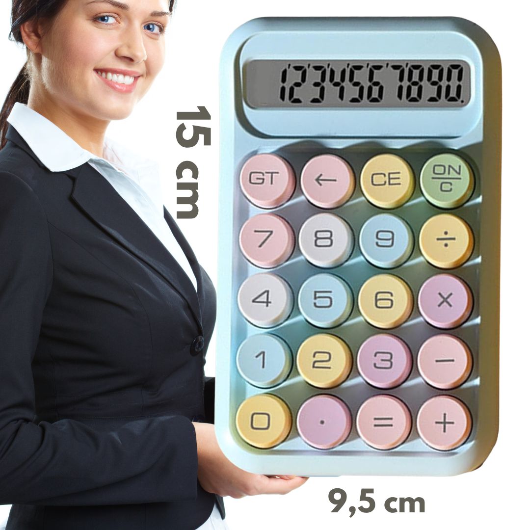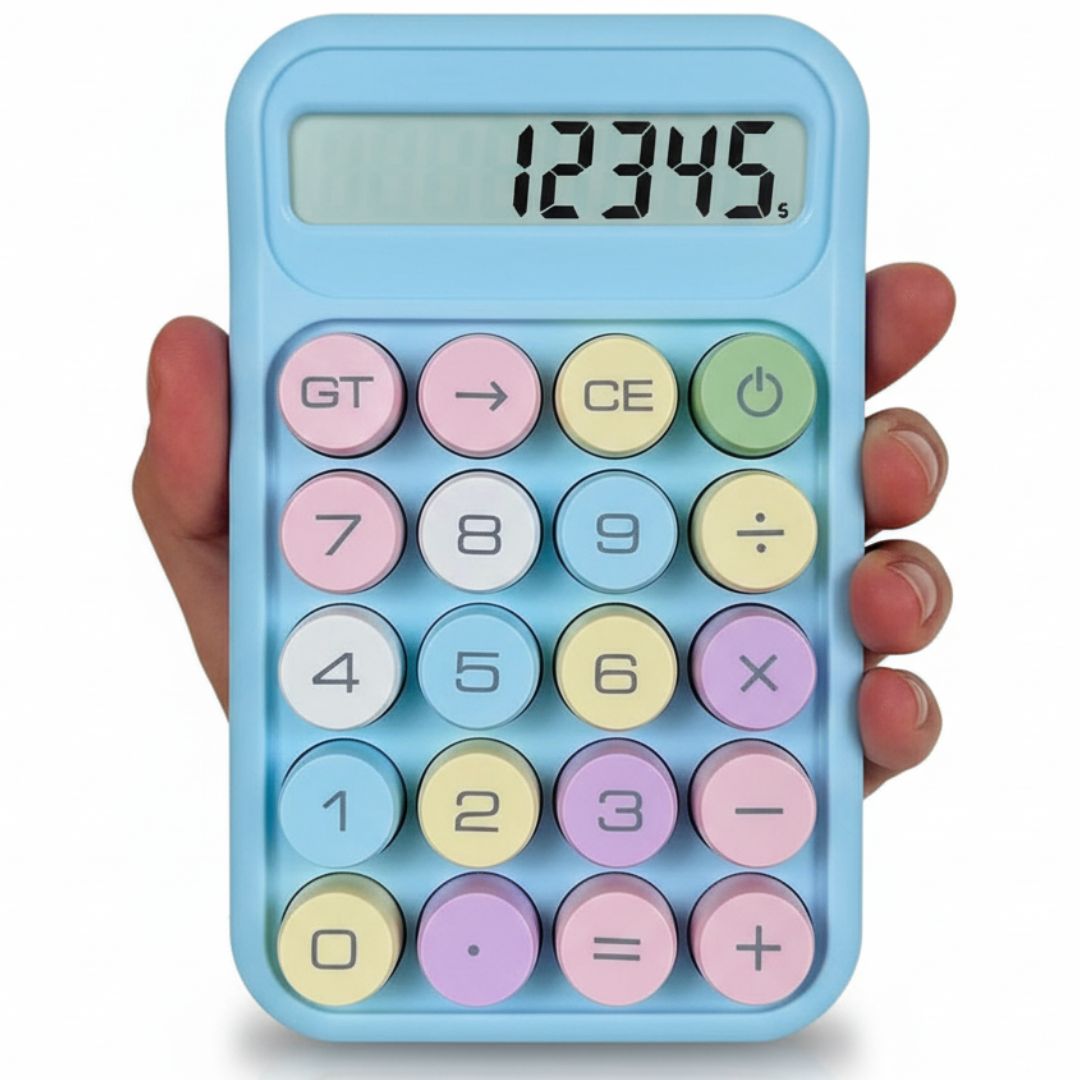 Cukierkowy kalkulator – duże przyciski, niebieski wyświetlacz