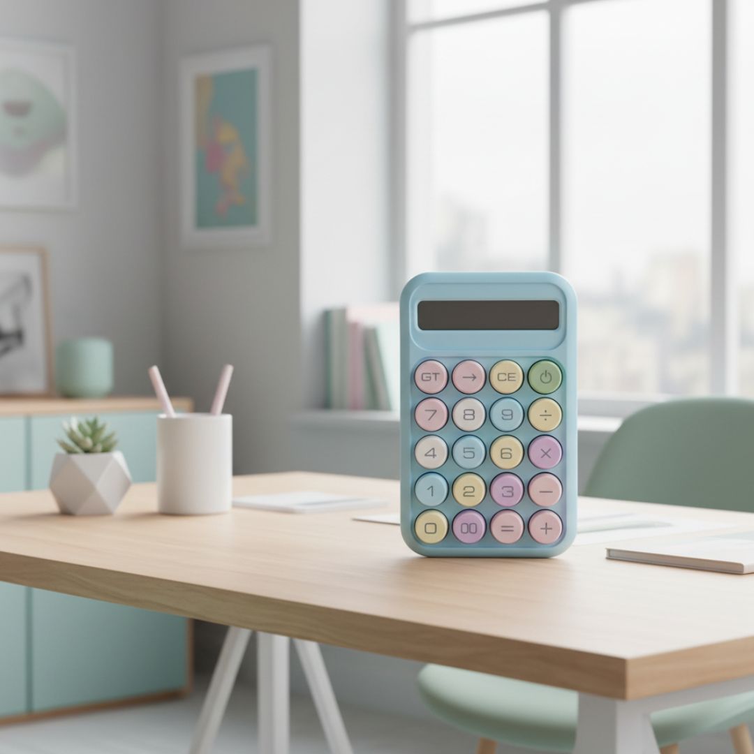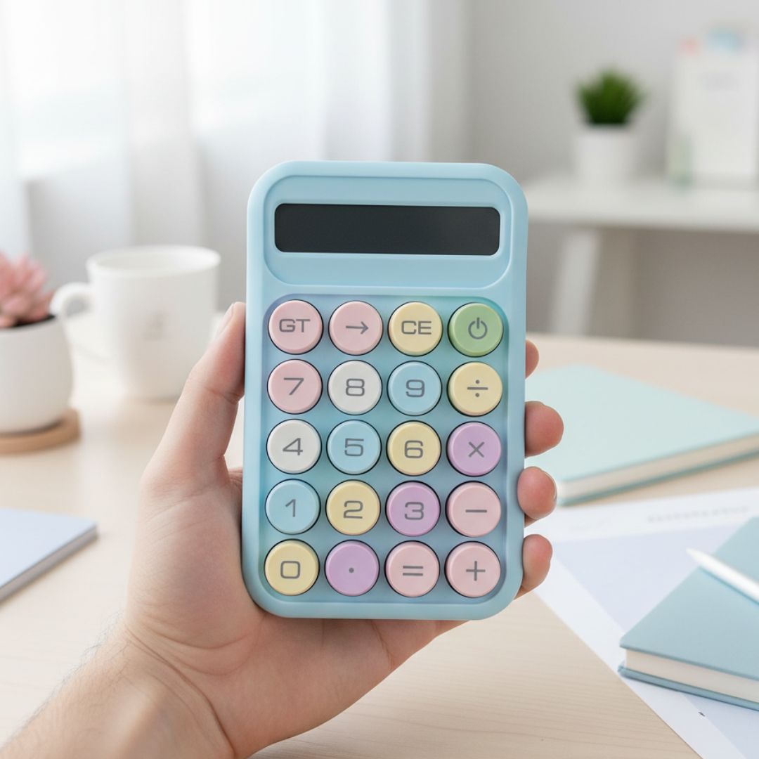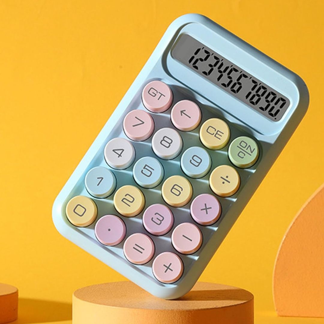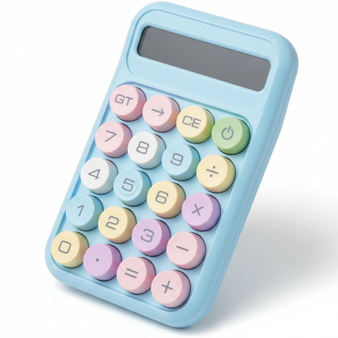 Cukierkowy kalkulator – duże przyciski, niebieski wyświetlacz