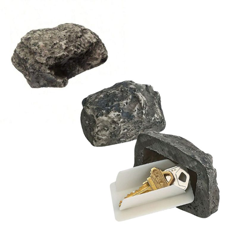 Ta atrapa kamienia doskonale imituje prawdziwy kamień, dzięki czemu idealnie wpisuje się w otoczenie, jednocześnie pełniąc funkcję praktycznego schowka na klucze lub inne drobne przedmioty.