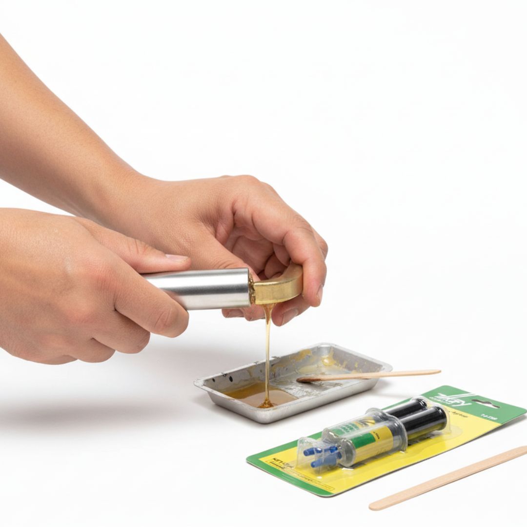 Czas wstępnego wiązania: około 4 minuty. Po utwardzeniu spoina jest odporna mechanicznie i trwała, umożliwiając bezpieczne użytkowanie naprawionych elementów.