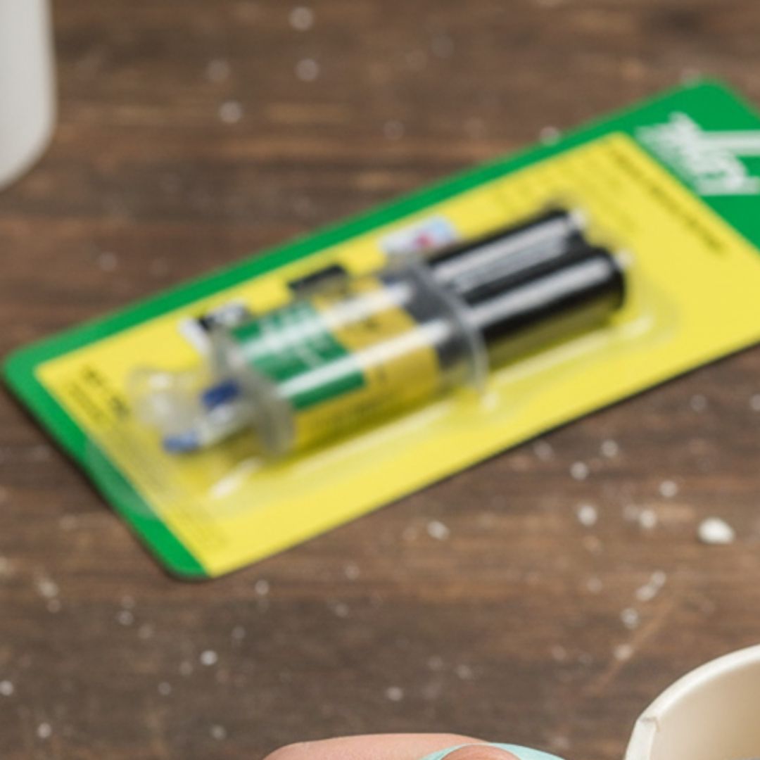 Profesjonalny, dwuskładnikowy klej epoksydowy w podwójnej strzykawce 2 x 12,5 ml. Szybkie wiązanie w ok. 4 minuty i trwała, mocna spoina idealna do napraw domowych, warsztatowych i rzemieślniczych.