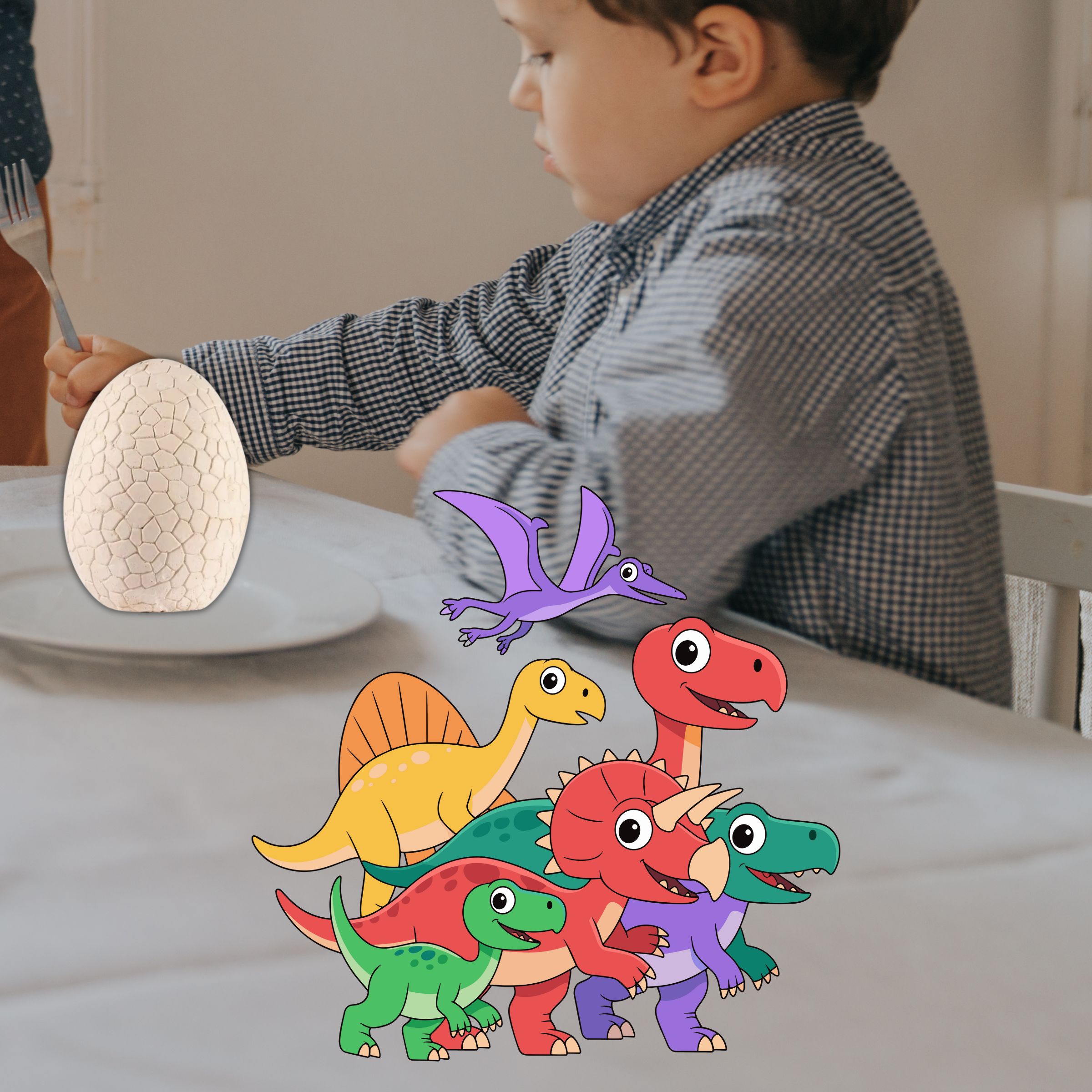 Produkt przeznaczony do użytku wyłącznie pod nadzorem osoby dorosłej. Nieodpowiedni dla dzieci poniżej 3 roku życia. Nie należy używać ostrych narzędzi ani rozbijać jajka siłą. Elementów zestawu nie wolno wkładać do ust ani narażać na kontakt z oczami.