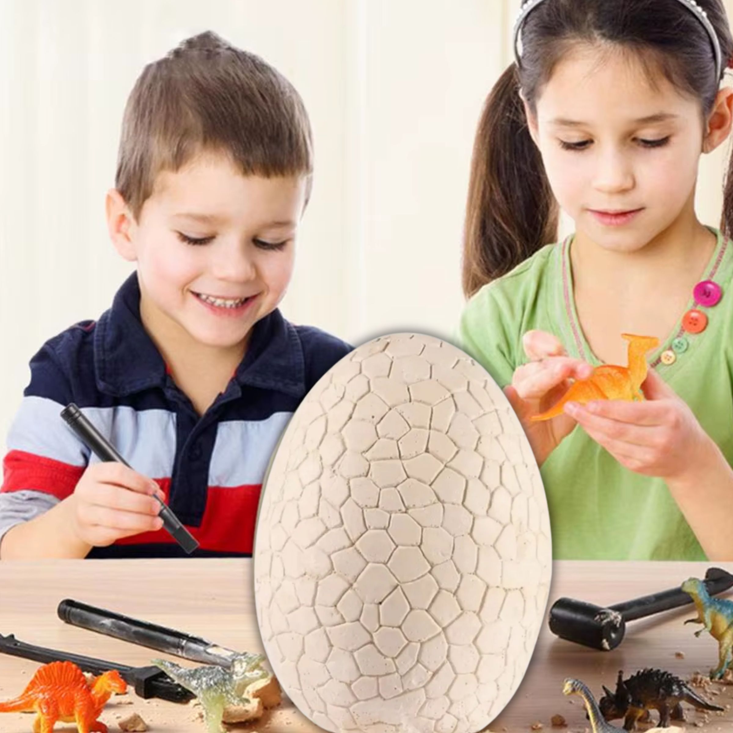 Zestaw został wykonany z bezpiecznych, nietoksycznych materiałów i spełnia europejskie normy bezpieczeństwa. Lekkie, plastikowe dłutko jest dopasowane do małych rąk, co zapewnia komfort i bezpieczeństwo użytkowania. Aby ograniczyć pylenie podczas zabawy, jajko można spryskać wodą lub na krótko zanurzyć w ciepłej wodzie.