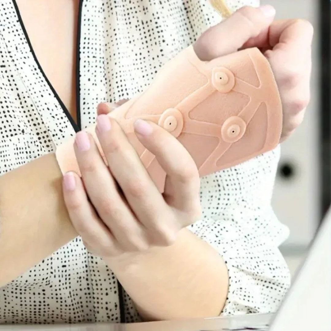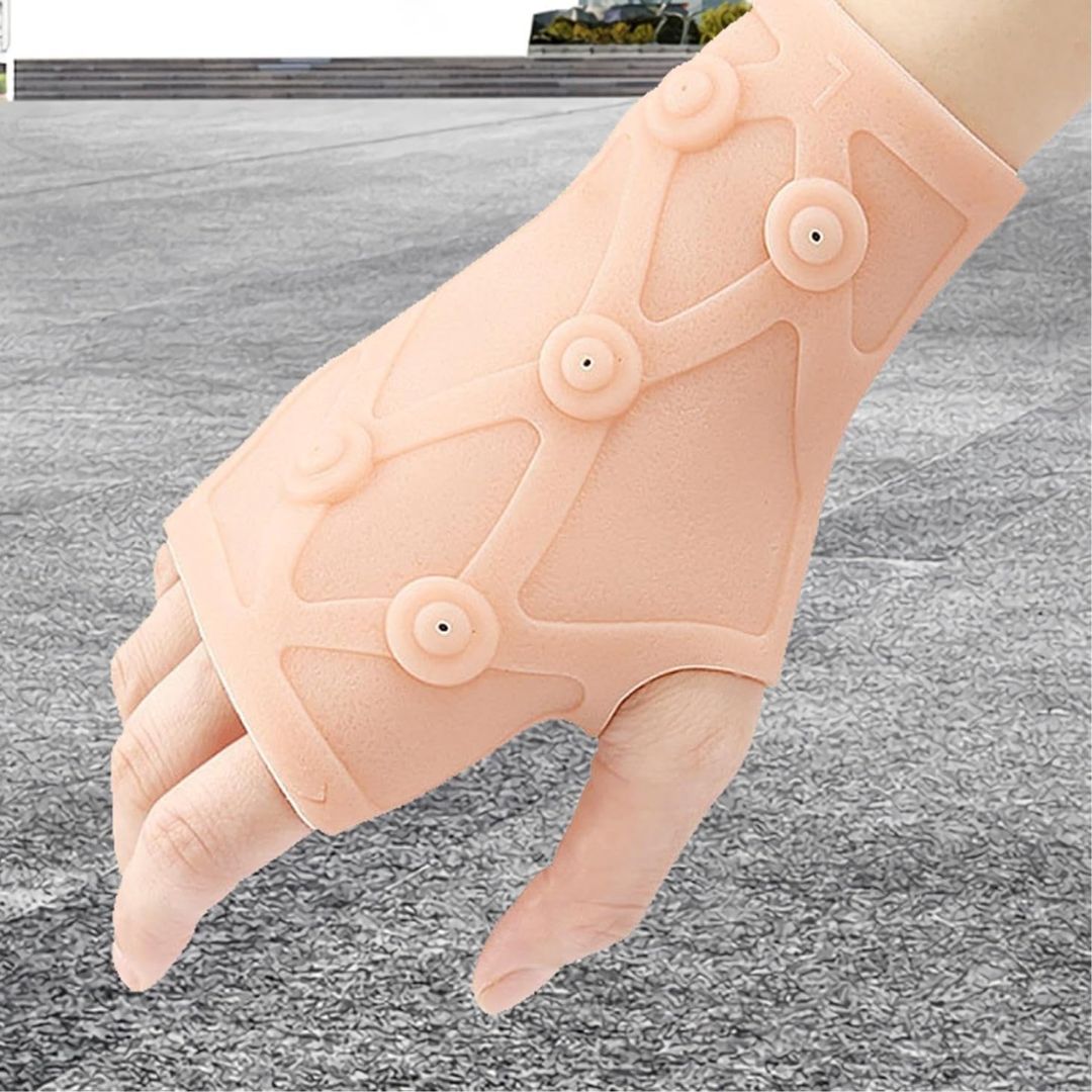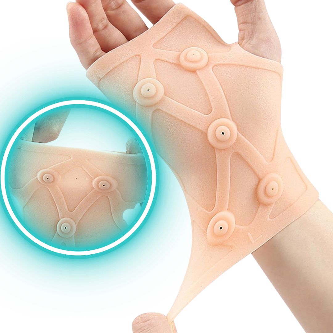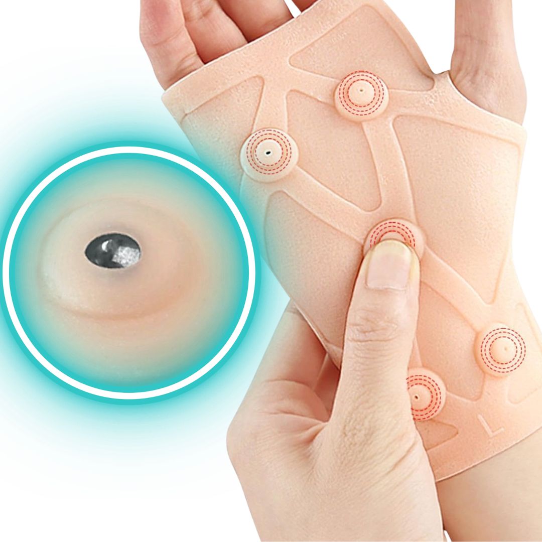 Magnetyczna opaska stabilizująca nadgarstek i dłoń, łącząca elastyczny żel SEBS z 10 magnesami (po 5 na każdej stronie) dla wsparcia stawów i komfortu w codziennych czynnościach.