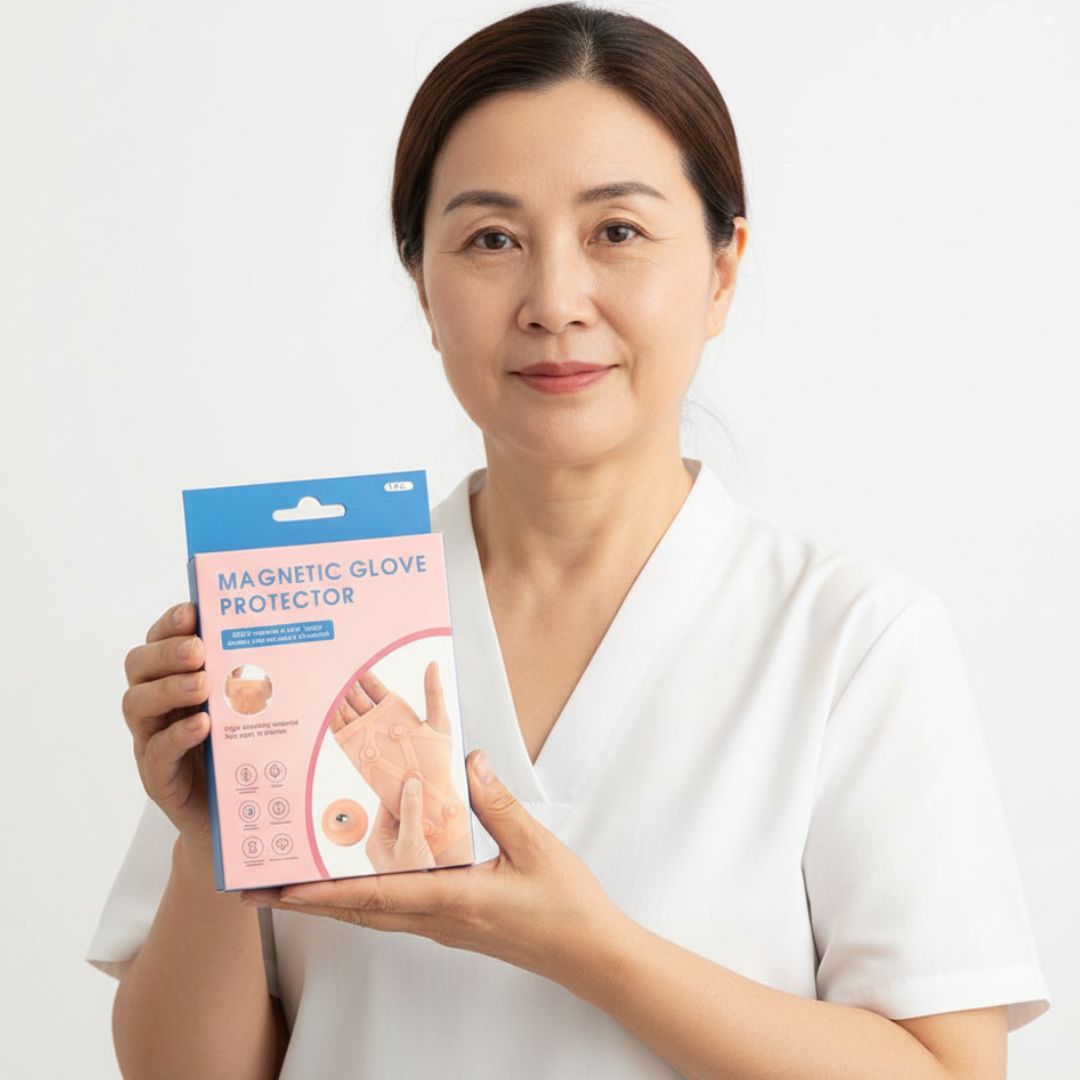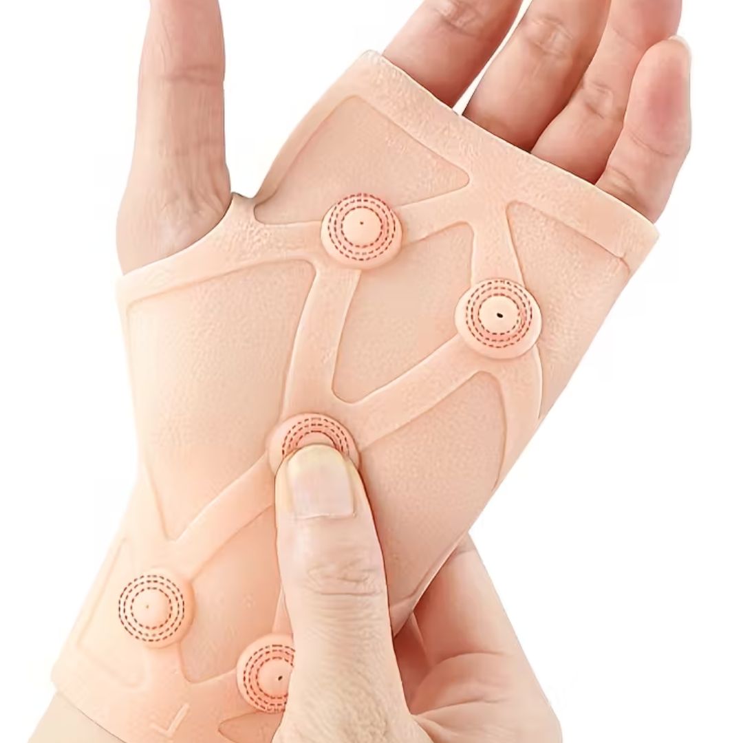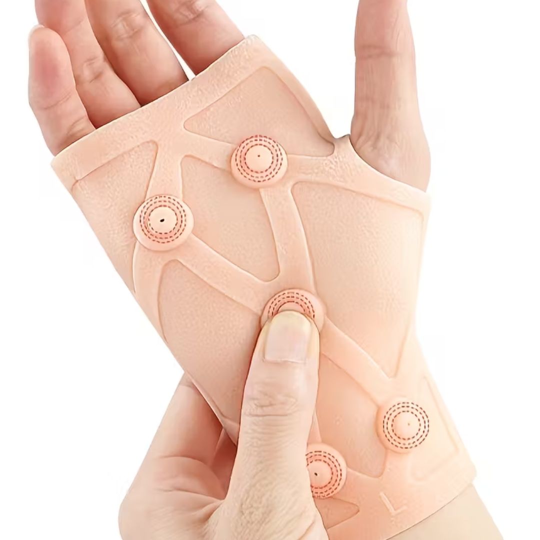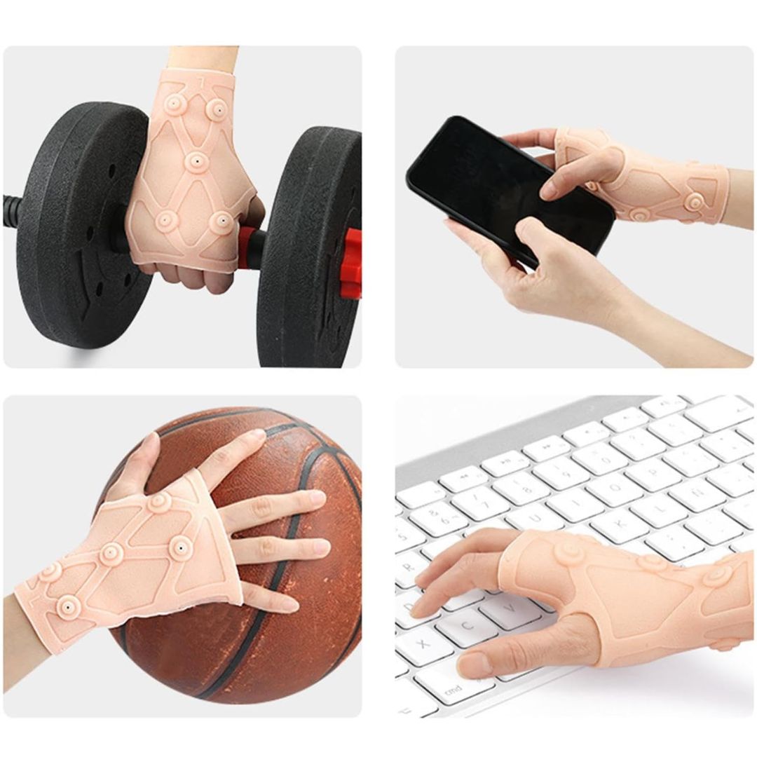Magnetyczna opaska stabilizująca nadgarstek i dłoń, łącząca elastyczny żel SEBS z 10 magnesami (po 5 na każdej stronie) dla wsparcia stawów i komfortu w codziennych czynnościach.