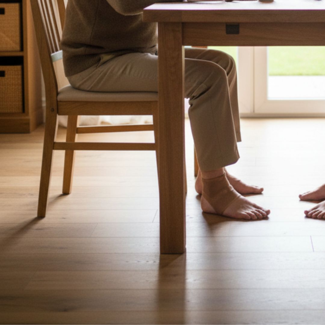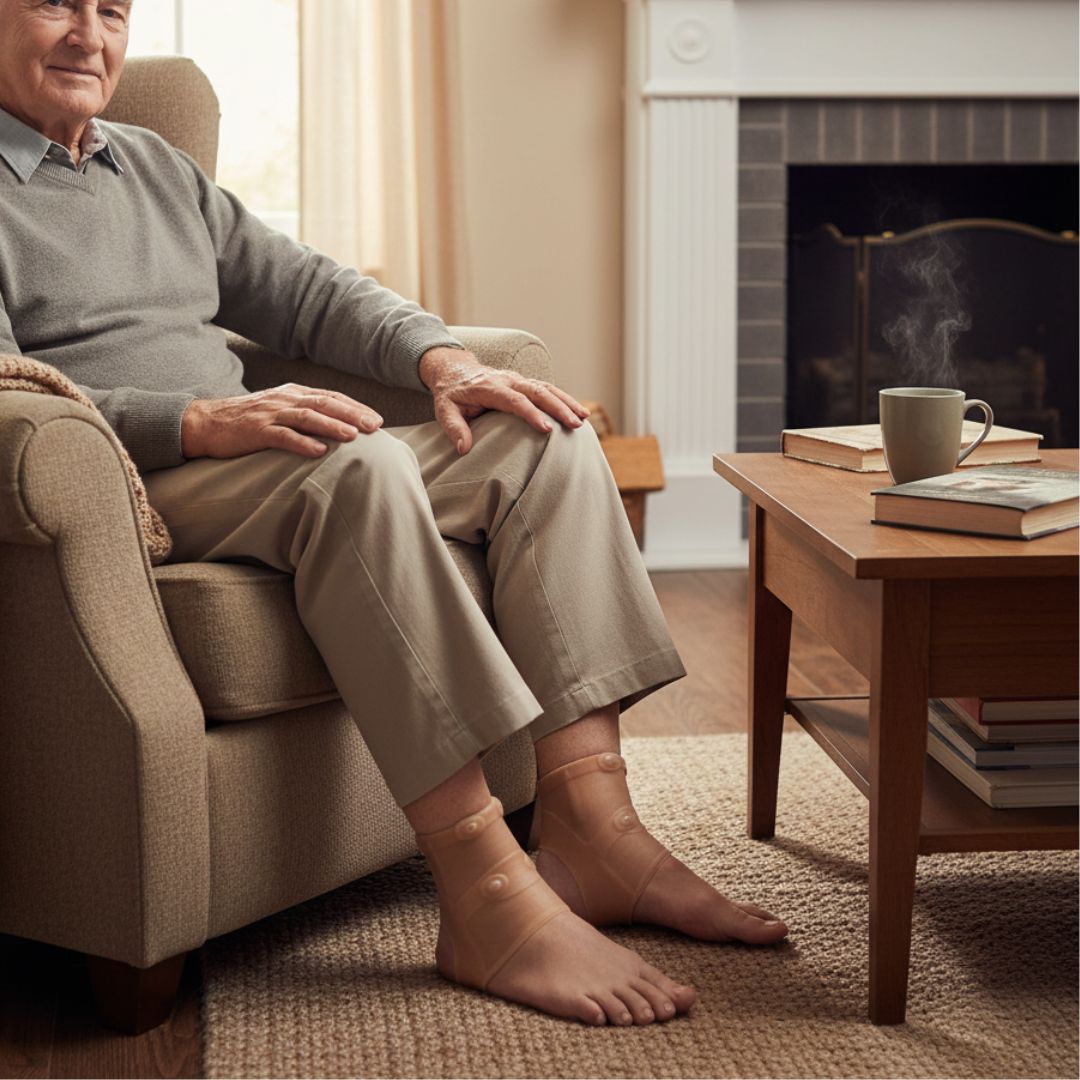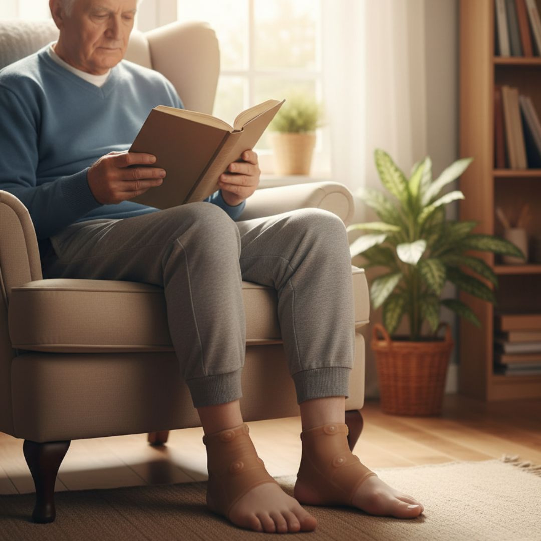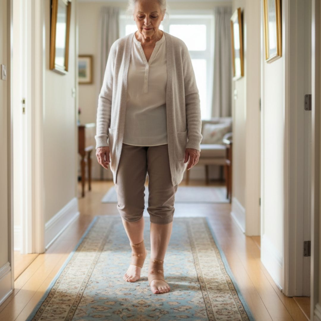 Opaska delikatnie przylega do stawu skokowego, wspierając jego naturalną stabilność. Może być stosowana: