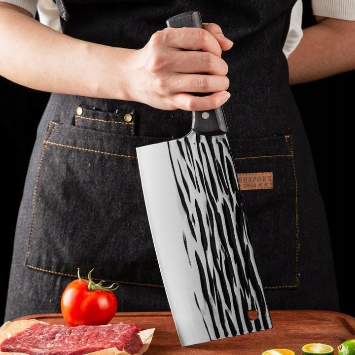 Dzięki tradycyjnym technikom ręcznego kucia, tasak ten zachowuje wyjątkową ostrość, która sprawia, że krojenie mięsa, ryb czy warzyw staje się czystą przyjemnością. To uniwersalne narzędzie doskonale sprawdzi się w każdej kuchni, umożliwiając precyzyjne krojenie przy minimalnym wysiłku. Bez względu na zadanie – od siekania po filetowanie – ten nóż zapewni perfekcyjne rezultaty