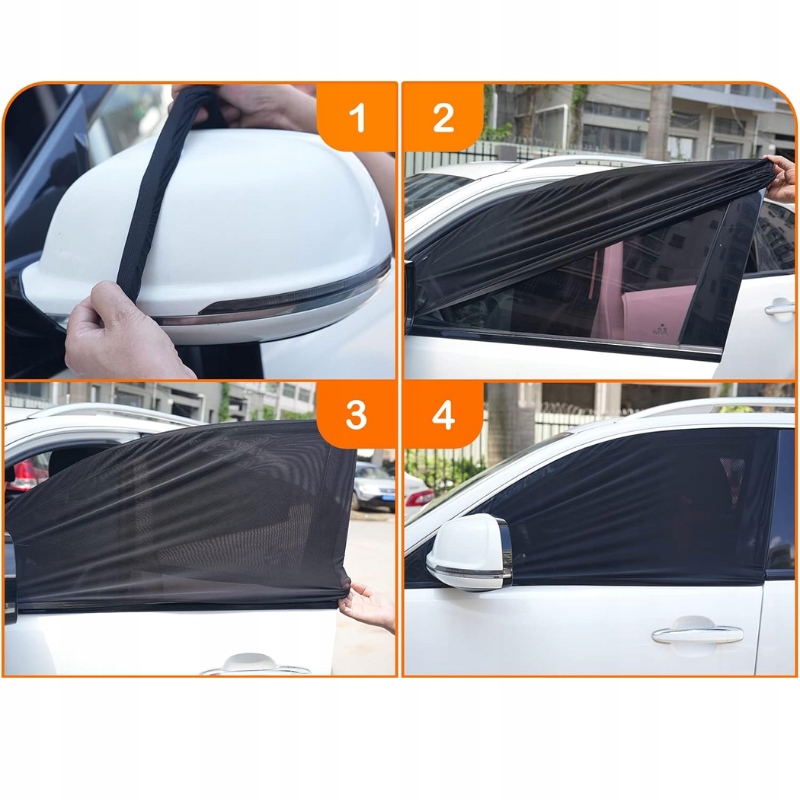 - Prosty Montaż: Zamontowanie naszych osłon to kwestia chwili. Wystarczy zaciągnąć je na lusterko boczne i na szybę drzwi przednich. Nie potrzebujesz żadnych dodatkowych narzędzi!