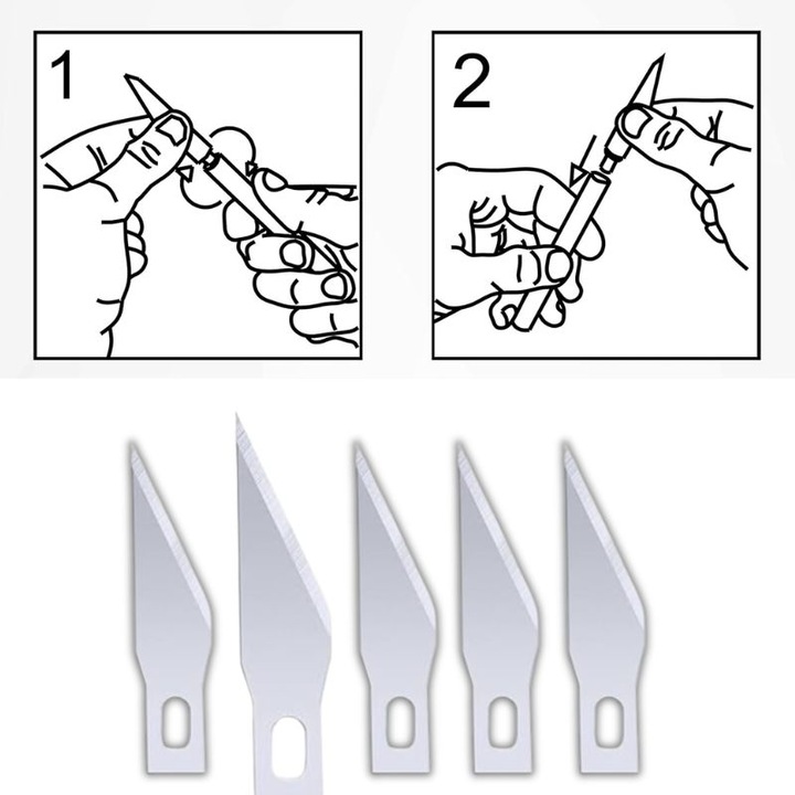 Wysoka Jakość Ostrzy i Zestaw Dodatkowych Ostrzy Skalpel jest wyposażony w wysokiej jakości ostrze, które gwarantuje czyste i precyzyjne cięcia. W zestawie znajduje się także 5 dodatkowych ostrzy, które zapewniają wygodę i oszczędność – nie musisz martwić się o zakup nowych ostrzy przez długi czas. Ostrza wykonane są z wytrzymałego materiału, co zapewnia ich długowieczność i odporność na zużycie.