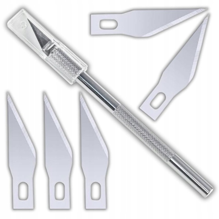 NÓŻ MODELARSKI SKALPEL NOŻYK DO CIĘCIA PAPIERU FOLII PRECYZYJNY + 5 OSTRZY