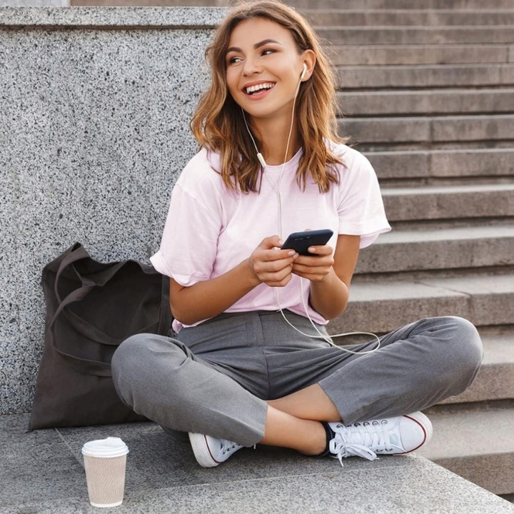 Wysokiej jakości słuchawki stereo kompatybilne z urządzeniami Android i iOS, zapewniające czysty dźwięk i doskonałą jakość rozmów. Idealne do codziennego użytku, od rozmów telefonicznych po słuchanie muzyki.