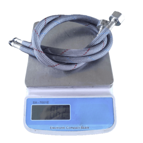 Materiał: stal nierdzewna w oplocie, tworzywo elastyczne