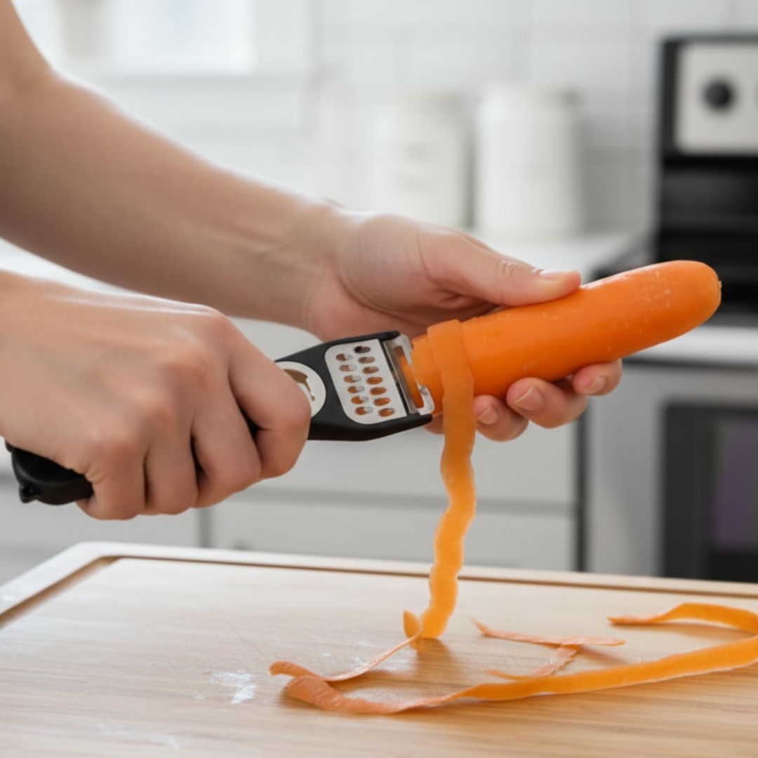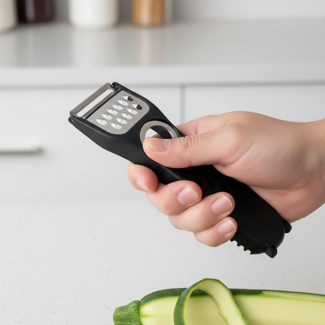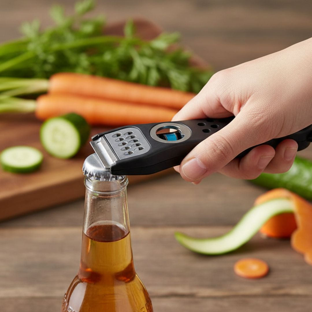 Dodatkowe funkcje: skrobaczka do warzyw, tarka do sera, otwieracz do kapsli i butelek, skrobak do ryb
