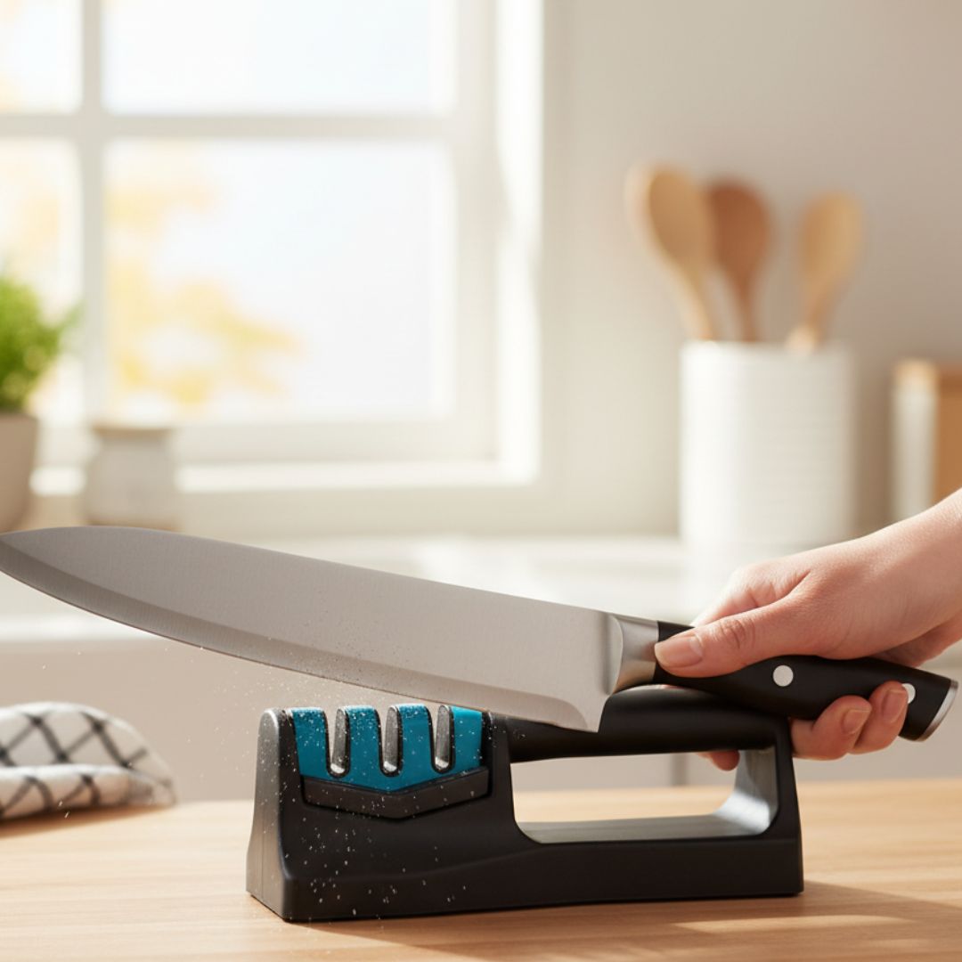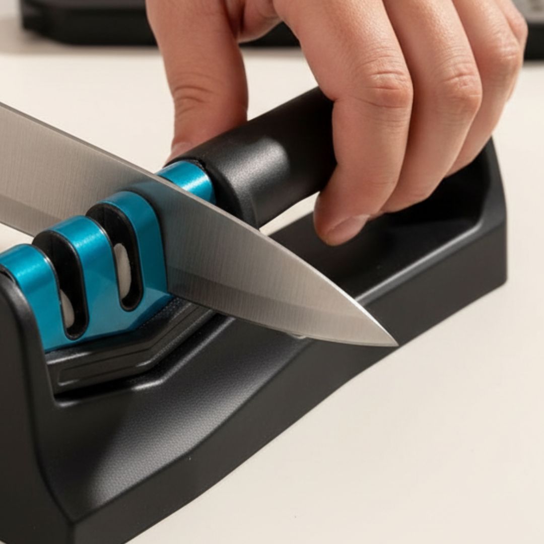Trójfazowa ostrzałka do noży i nożyczek to praktyczne i skuteczne narzędzie, które szybko przywraca ostrość kuchennym akcesoriom. Sprawdzi się zarówno w kuchni domowej, jak i półprofesjonalnej, zapewniając wygodę, bezpieczeństwo i precyzję.