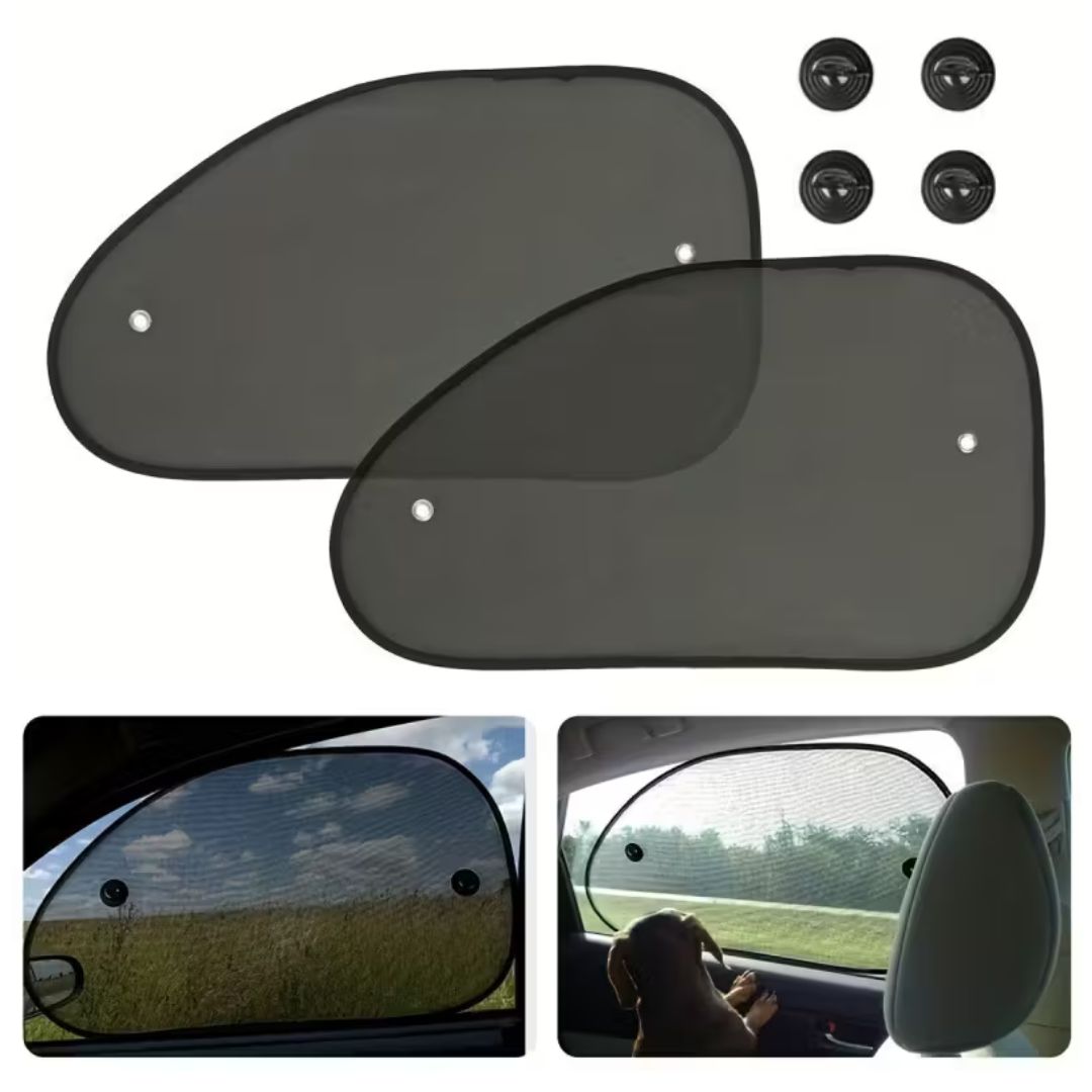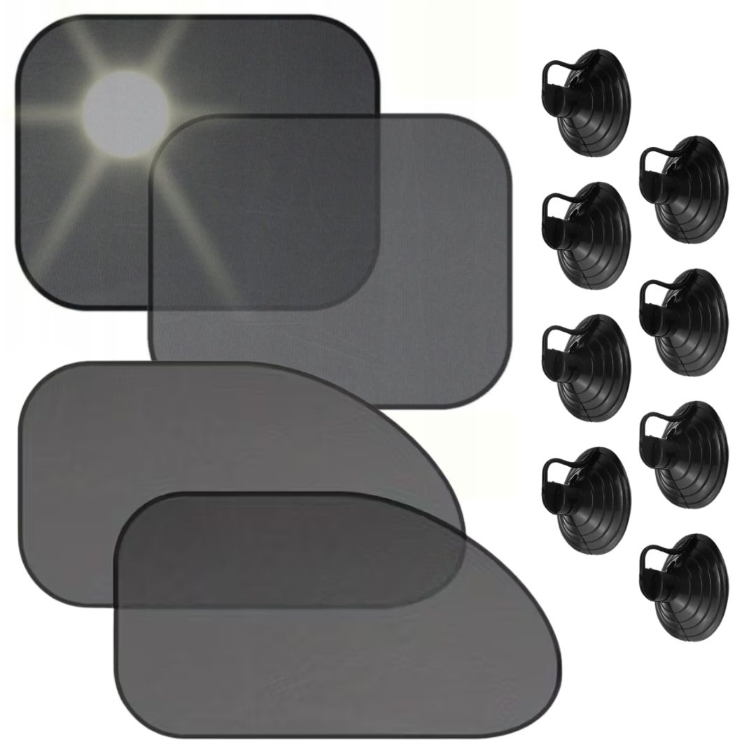 Kompletny zestaw zasłonek przeciwsłonecznych na przyssawki – ochrona przed UV i komfort w podróży. Idealne dla kierowców dbających o komfort pasażerów i wnętrza samochodu.