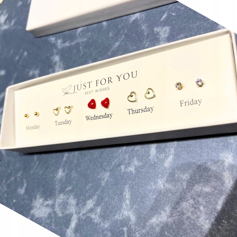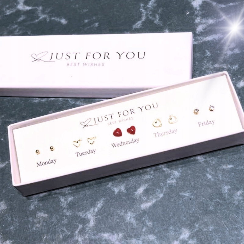 Oto Twój klucz do perfekcyjnej stylizacji każdego dnia tygodnia! Nasz zestaw 5 par kolczyków został stworzony z myślą o Tobie, byś zawsze prezentowała się olśniewająco, niezależnie od okazji.