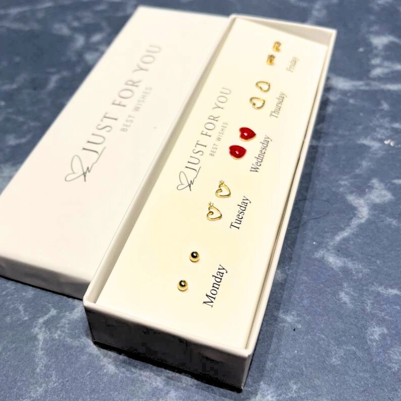 - Zróżnicowanie: Zestaw zawiera 5 różnych par kolczyków, co daje możliwość wyboru odpowiedniego dodatku do każdej stylizacji i nastroju. Twój ukochany będzie mógł cieszyć się różnorodnością i dopasować kolczyki do swojego codziennego wyglądu lub specjalnych okazji.