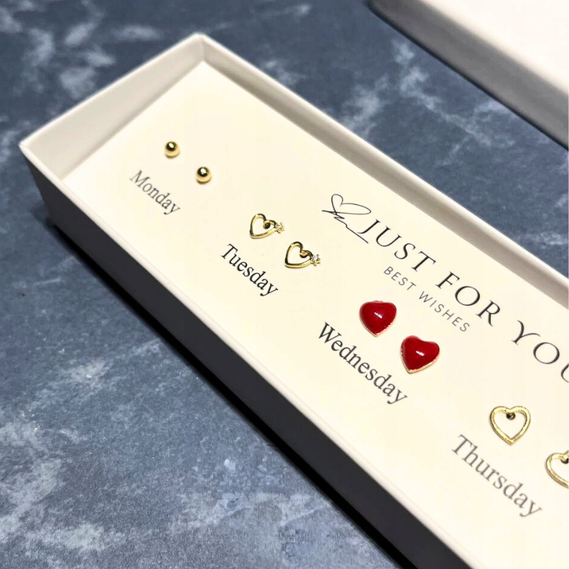 - Wyjątkowość: Zestaw 5 par kolczyków jest nietypowym, a jednocześnie praktycznym prezentem, który pokaże Twoją troskę o szczegóły i indywidualne potrzeby Twojej ukochanej. To nie tylko biżuteria, ale również wyraz Twojej uwagi i dbałości o jej potrzeby