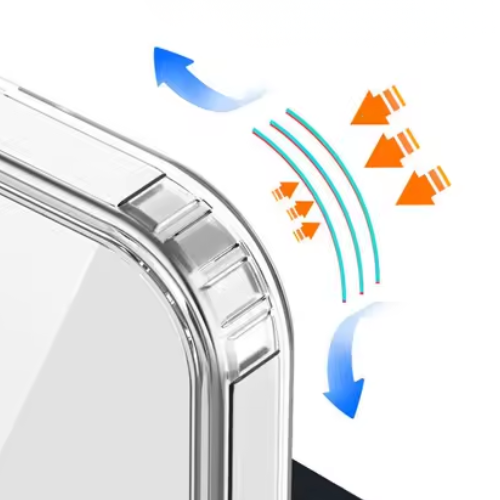 Cztery wzmocnione narożniki absorbują energię uderzenia, minimalizując ryzyko uszkodzeń.