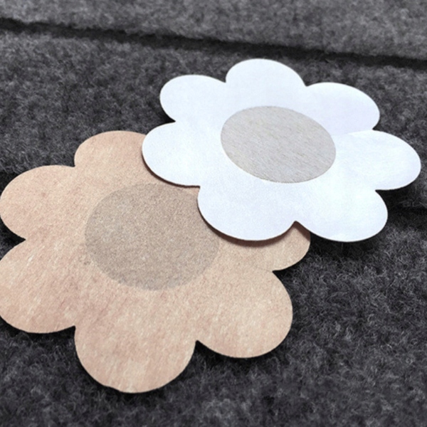 Wewnętrzna strona nakładek jest pokryta delikatnym dla wrażliwej kobiecej skóry klejem, który po właściwym użytkowaniu może służyć wielokrotnie.